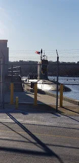 Our second day in Mystic, we woke up excited so didn't sleep late. We went to downtown Mystic and went shopping. They have really neat stores. A tea and spice store, clothing stores with different designers, both local and national, a surprisingly large book store, toy store, a really interesting men's store, a pet supply store, a couple coffee shops, bakeries, bars, and restaurants. We spent a couple hours shopping then went to a chain clothing store so my sister could get some thermal leggings to go under her clothes. Did I say it was cold? The temperature was 17 degrees and windy. We went to a place called the Mystic Knotworks. People make door mats, key chains, jewelry and other useful and decorative items out of rope. Then we went to a bakery for lunch and coffee. It was ok. We felt like we were interrupting the baker who has stuff ready to sell, but was making more. At the appointed time, we drove to the navy base and parked back at the Nautilus museum. We waited with other excited family members for a van that had room for us. While waiting, the submarine went under the bridge to enter the harbor. Oh goodness, Josh was almost there. We rode the shuttle onto base and to the dock the submarine would be arriving at. We waited with a couple hundred other very excited, noisy, cold family members for about an hour while the sub made it's way through the harbor, was maneuvered by tug boats to the dock, was tied off, and had border control and customs paperwork done. Then they had to take quarantined trash to the dumpster and haul it away. Then it was time! Nope, not yet. Brrrr. The families that live on base or in town get to earn privilege. The first sailor to get off and get the first kiss because his wife won the privilege by volunteering, then they had the first hug for another family who won that privilege. Then there was a gender reveal. The sailor didn't know the gender of his upcoming child, but his family did. I don't know how they kept it a secret until he got home. The timing was hopefully good. The sailors are at sea for 6 months then on shore for several months. Hopefully he gets to see his baby before he goes out again. Now it is time!! They opened the gates to the dock and we all rushed in, eagerly hunting for our sailor. So many people hugging and talking. Where is he? We saw him crossing the gangplank!! My sister, his mom, got a big hug and smiles. Everyone was standing around in 30 degree weather smiling, talking, hugging, kissing, and having happy reunions. We wound up out on the dock for about 30 minutes Josh, and all the other sailors were in dress uniforms. No jackets. We gave him our handwarmers. Josh was able to grab his stuff and leave when we did. We had to take the shuttle back to the car, then drive onto base with my military identification (Thank you husband David). We met Josh at the bowling ally where he was on his laptop reactivating his phone service. Mom and son hugged again and we drove him to his car which was parked in long term parking on base. One of the sailor's dad's was there with his truck jumping all the cars people were trying to start. I am not sure he intended to jump everyone's cars, but he happily did it. I stayed in our heated rental to stay out of the way. Mom stayed near her son. He stopped and got air in his tires then we went shopping with him at the navy exchange for a few groceries and other supplies. Our next stop was Lowe's to buy a Christmas tree. Josh has a nice BMW and he had the tree cut so it would fit in the trunk and into the back seat. It made the car smell really nice. He then picked up a pizza at his favorite pizza place and we made it to his apartment. Josh's mom and I got to hang out at his house while he caught up with his life, got his internet on, woke up Alexa, fixed his heat, ate pizza and set up his Christmas tree. His house is really neat. He lives on the 2nd floor of a 3 story house that was built in the late 1800's. It is right across the street from the river. He can lay in bed, see the water, and watch the sailing ships go in and out. He has built a comfortable and cozy home. It was more cozy the following day after his landlord fixed the thermostat. The first night it would only get up to 60 degrees. Eventually we went back to the hotel and finally warmed up.