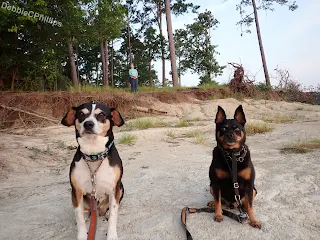 Twin Dikes Park Campground in on the Sam Rayburn Reservior. We got to drive over a dam and it's earthen dikes to get to the park. The lake is very popular with fishermen and boaters. There is a lot of activity with jet-skies, tubers, and boats going back and forth in the lake. The fishermen fish mainly from boats. There are 2 boat ramps in the park, but only 1 was in service. The campgrounds have one crowded loop with water and electric which is where the dump station is, one not as crowded loop that is half water and electric, and half water only, which is were we stayed (in a water and electric site,) and one loop that is just water only with no one camping in that loop. It looked like the loop we stayed on had the easiest access to the lake. The shores were all hard rock and very steep. We found a less steep place to get to the shore with a tiny trail. The edge of the water is rocky with very little silt, so you don't have to wade in muck while you are swimming, you just have to be careful not to slip on rocks. The water was comfortably cool. Where the campground is on the lake, you get to see both sunsets and sunrises. They are beautiful over the water. There is a very rough trail through the woods in the park. The sign at the trailhead indicates both walking and biking, but it would be a tough trail to bike. There was a lot of brush, pine needles and roots, and a couple logs across the trail. The woods are lovely and peaceful with minimal signs of other people. One of the trail signs said there was a pitcher plant bog somewhere on the trail, but I couldn't find it. I was able to identify a few other plants from signs along the trail. The creek that ran across and along part of the trail was dry, but we did explore off trail and along the creek a bit. The woods were open enough to do so. I crossed the creek bed on a big log, Peanut followed in my footsteps, but Tippy went down through the gully. There were 2 benches, a bridge in poor repair, and a covered picnic table at various locations along the trail. The easiest loop of the trail was about half a mile long. The rougher, hillier trail that ended at the lake was a bit over half a mile. We then went cross country to get to the boat ramp parking lot. Other people had done that also, so there was a little path. At our campsite, we got a nice breeze off the lake much of the time, but it was still hot (June in Texas). The evenings and early mornings were comfortable, the rest of the day, was spent in the shade, in the air conditioning, or in the water. The camp hosts were friendly, kept a good eye on the campground, but had to spend a lot of time picking up trash. Unfortunately, there was a lot of litter both in the woods and along the lake shore, beer cans, soda bottles, styrofoam cups, fishing line, oil jugs, shoes. Our neighbor was "fishing" with a magnet and found a $200 pocket knife. During the heat of the day, we went exploring a little bit and visited a park by the dam. It was a nice park with benches to sit in the shade and enjoy the lake. There was no safe place to walk across the dam to see the water coming out the other side. Driving across, it looked like there would have been some really nice views if we could have stopped. We visited a fish hatchery. They gave tours, but were closed to the public because of COVID. We did see all the ponds where they raised millions of fingerlings to release into Texas lakes for the fishermen. We drove past the park and saw a cute little town where I got gas. There were restaurants, stores, and bait shops. Past town we found a bit of road construction and decided to turn back. As we turned around, I saw a sign to another dam, but we decided not to go explore that. I had been enjoying sitting by the picnic table listening to the birds and reading for hours and wanted to continue my book and take the dogs swimming. I did finish my book, and the dogs did not like swimming. At night, after sunset and before full darkness, I saw fireflies (lightning bugs) and a couple bats. After full dark, the mosquitoes started coming out as the stars were becoming visible.